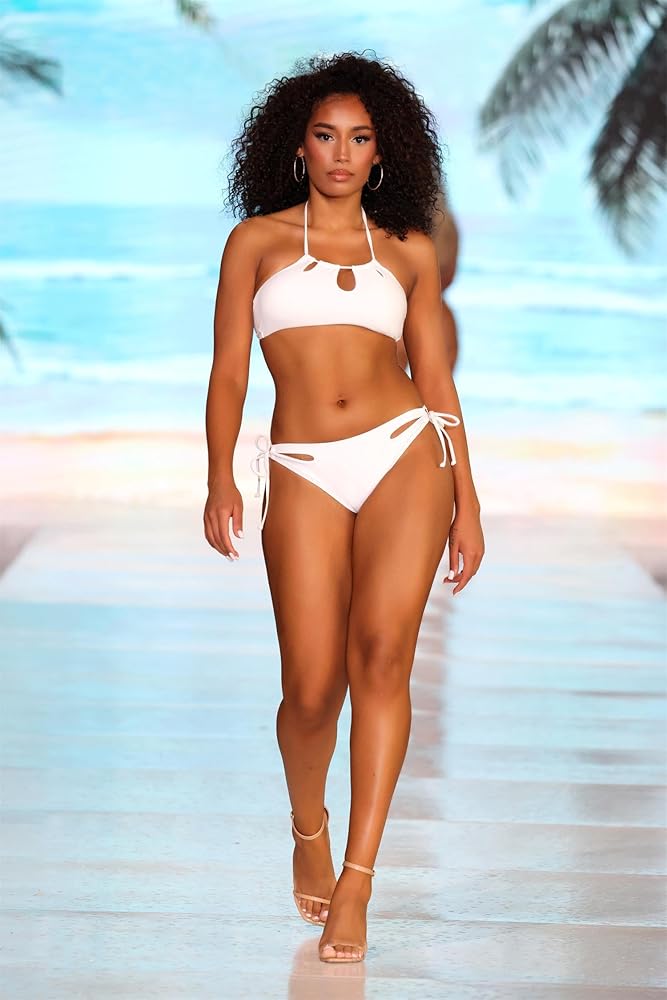 Classic bikini sets for women with adjustable halter strap tie at neck and back hook design will be easy to adjust the tightening effect as your torso, which is compatible with any kinds of shapes.The front cutout design womens swimsuits makes an eye-catching statement and shows the unique style.