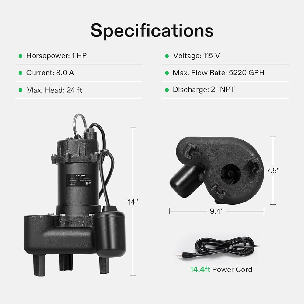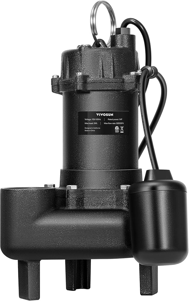 Excellent Performance: This sewage pump, with a powerful copper wire motor, drains water at up to 4680 GPH and lifts water up to 16.5 ft, making sewage removal easier than ever before; The oil-filled split capacitor effectively cools the unit, ensuring longer work times