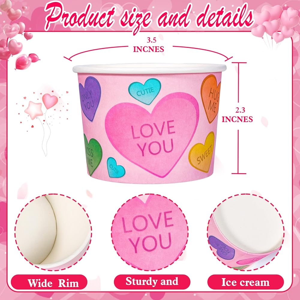 【Valentine's Day Cup Set】you will get 24 pieces of Valentine's Day party favor ice cream bowls, they are available in 4 different Valentine's Day ice cream designs, 6 pieces for each pattern, to meet your Valentine's Day party, wedding, birthday party, wedding anniversary, ice cream party or other themed party.