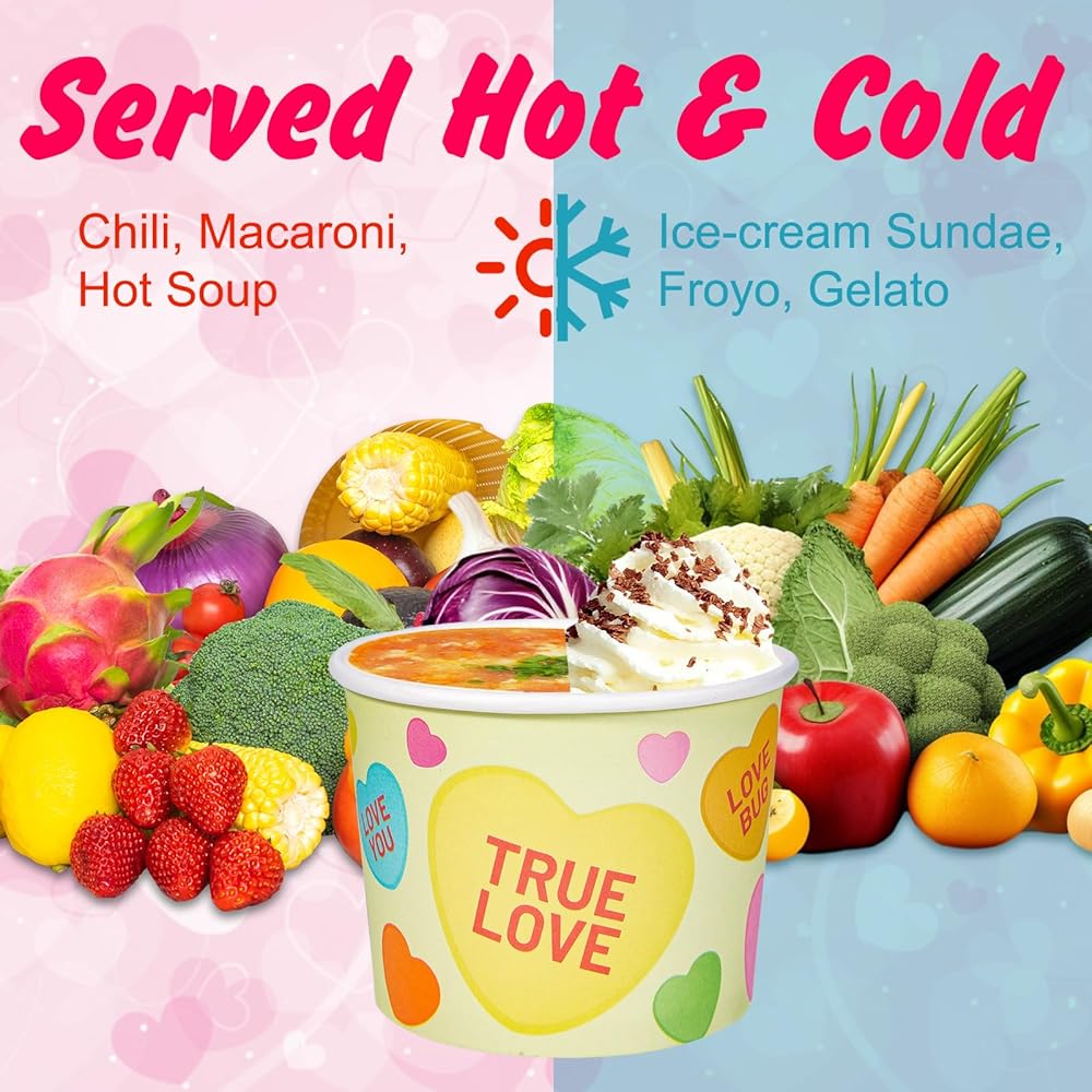 【High Quality Paper Soup Bowls】All of our Valentine's Day party themed disposable paper ice cream bowls are made of quality paper, non-toxic, with no smell, heat-resistant, leak-proof and durable. The pattern and color are well-printed and fade-resistant to provide you with a party full of a romantic heart Valentine Day party -theme atmosphere.