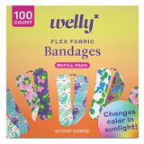Welly Bandage Color Changing Refill Pack | Adhesive Flexible Fabric Bandages | Assorted Shapes and Patterns for Minor Cuts, Scrapes, and Wounds - 100 Count