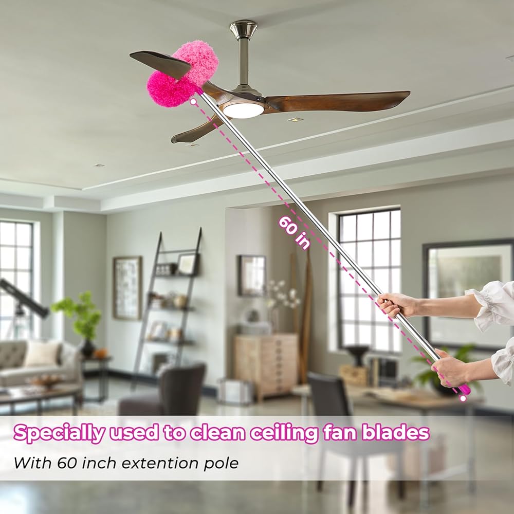 [Thoughtful household dusting tools]: Keep your home cleaning with these duster tools. With every attachment you may need, including ceiling fan duster, spider web brush, computer cleaner , blind duster,gap cleaning brush ,sponge cleaner, gloves, cleaning cloth , storage bag and a 60-inch extension pole, make cleaning the difficult to access an easier thing.