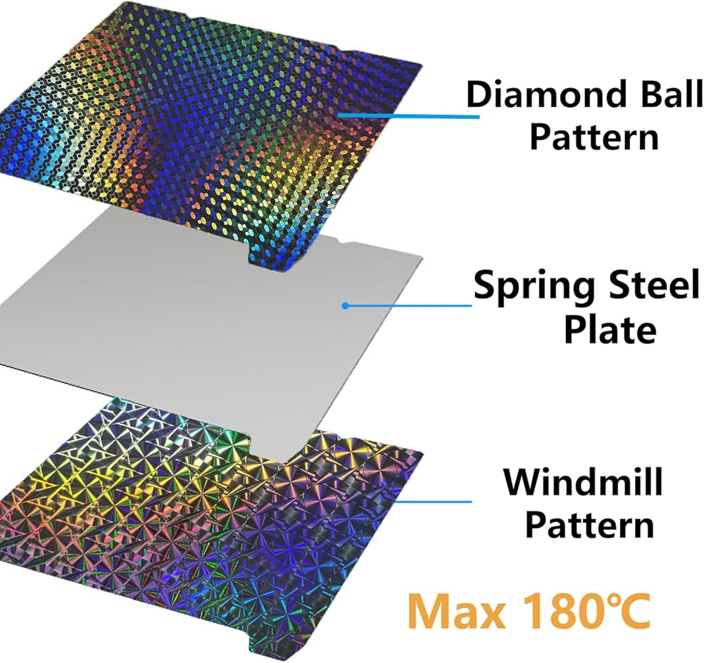 【Excellent adhesion for first printing layer】The spring steel flexible build plate has a good adhesive, even better than smooth PEI PET or PEO. It even can stick well without heating the platform, no glue is needed.Please let the build plate cool down before remove the model to avoid damaging the coating.