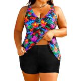 Plus size swimsuits for women: V neck tankini tops with boy shorts perfectly hide your tummy, making you look slimmer. Cross straps at the back enhance your beauty and slimming effect. They are truly flattering.