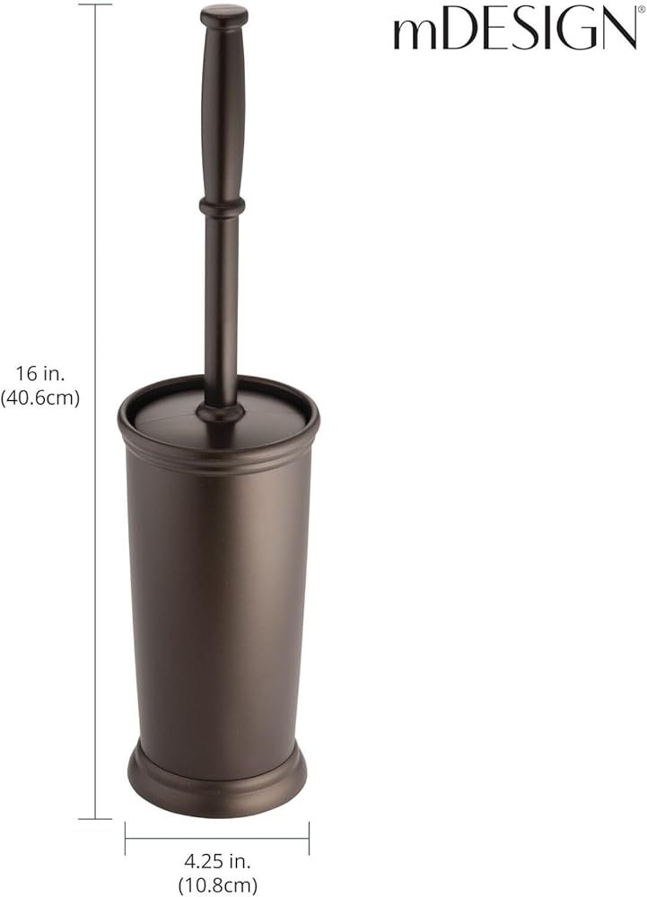mDesign Toilet Bowl Brush and Holder - Covered Bathroom Toilet Brush - Standing Toilet Bowl Scrubber in Modern Holder - Compact, Space Saving, Deep Cleaning Brush for Toilet - Hyde Collection - Gray