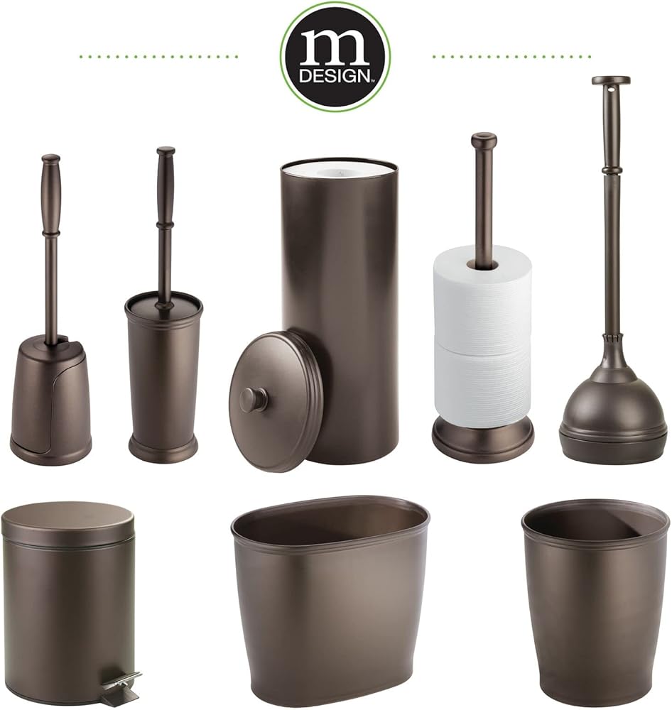 mDesign Plastic Freestanding Hideaway Toilet Bowl Plunger with Holder Set - Plunger for Bathroom Storage and Cleaning Organization - Heavy Duty, Space Saving - Aura Collection - Black