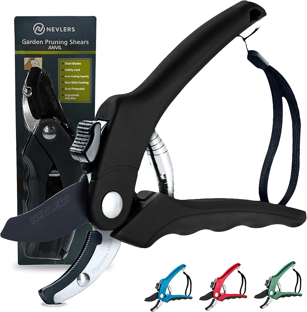 Comfortable Ergonomic Rubber Handles: The Nevlers Bypass Pruning Scissors deliver maximum comfort with an ergonomic rubber grip. The slip-resistant handles on these bypass hand pruners for gardening are perfect for prolonged use & reducing hand strain. Coupled with a shock-absoring spring assist, these flower clippers provide the ease you need for painless pruning. The ideal flower cutter yard tools for both a seasoned gardener working on big projects & someone who enjoys weekend plant care!