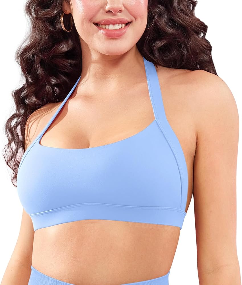 Halter Backless Sports Bra: Scoop neck, halterneck with adjustable straps, open back sexy halter sports bra for women, backless sleeveless workout tops