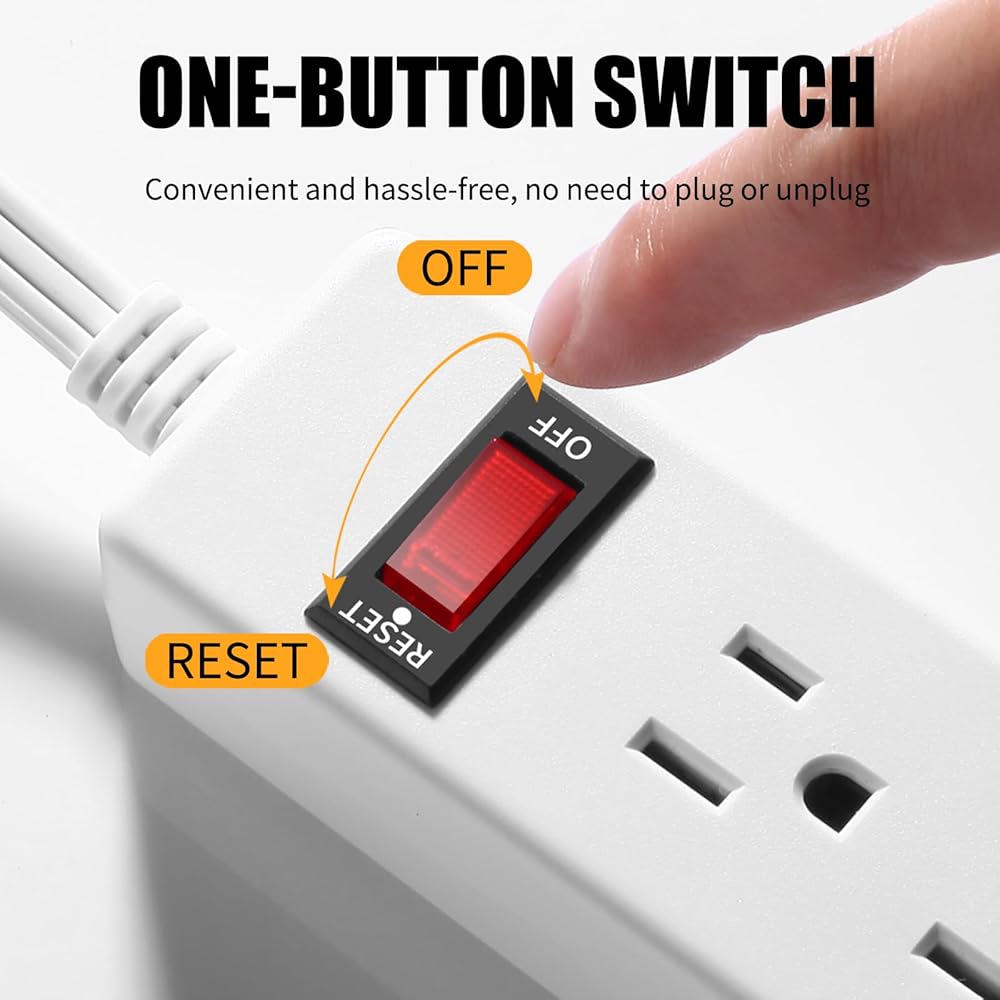One-Button Switch : Simplify your power management with our convenient one-button switch design. No more hassle of repeatedly plugging or unplugging devices—just a simple press to turn your power on or off, saving you time and effort while ensuring a smooth user experience.