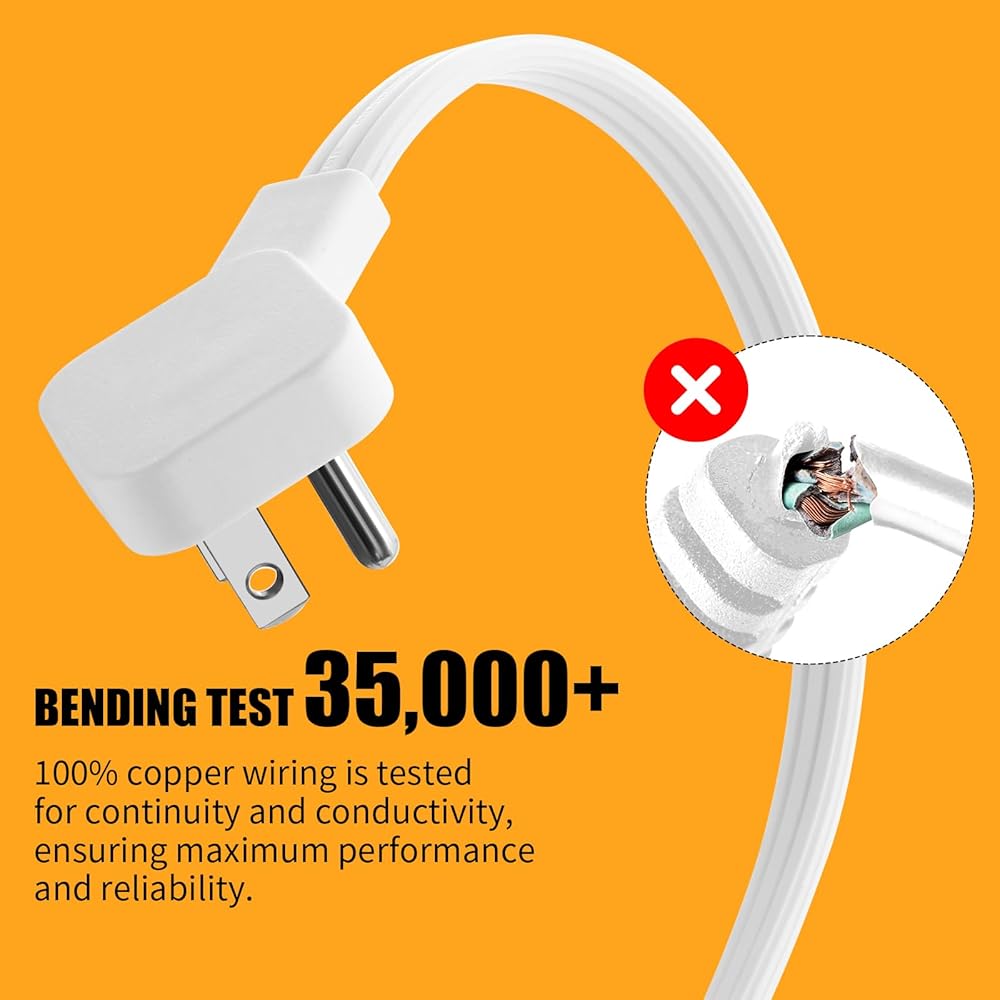 Suitable for Any Occasions : The 12 Feet low profile white two way extension cord can charge on desktop, vanity, bookshelves, or nightstand at home, bedroom, office and dorm room.