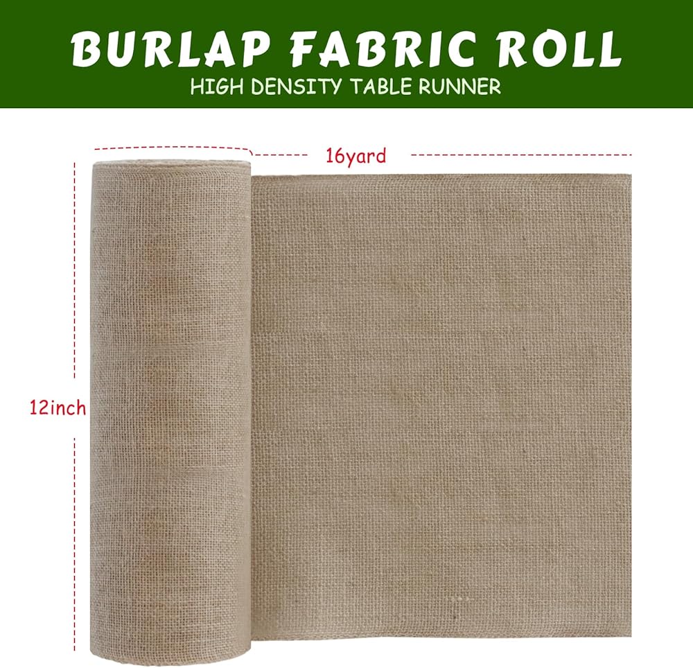 Shatex 12''x48ft Burlap Table Runner, High Density Burlap Roll for Rustic Wedding ,Outdoor Tables, Farmhouse Style Party, Home Decor,Wedding, Festival, Celebration, 1roll 16yard