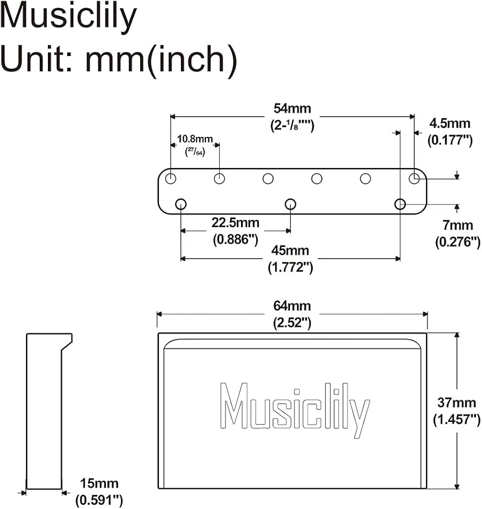 String Spacing: 54mm (2-1/8"), mounting screw holes spacing: 45mm (1-49/64")