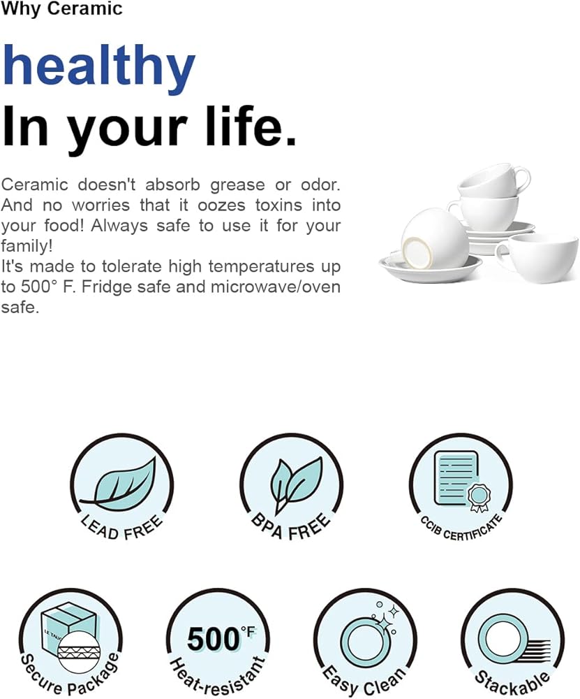 LE TAUCI Coffee Mugs 12 oz, Ceramic Mug Set, Housewarming Wedding Gift, Coffee Cups for Latte, Hot Tea, Cappuccino, Mocha, Cocoa - Set of 4, Arctic White