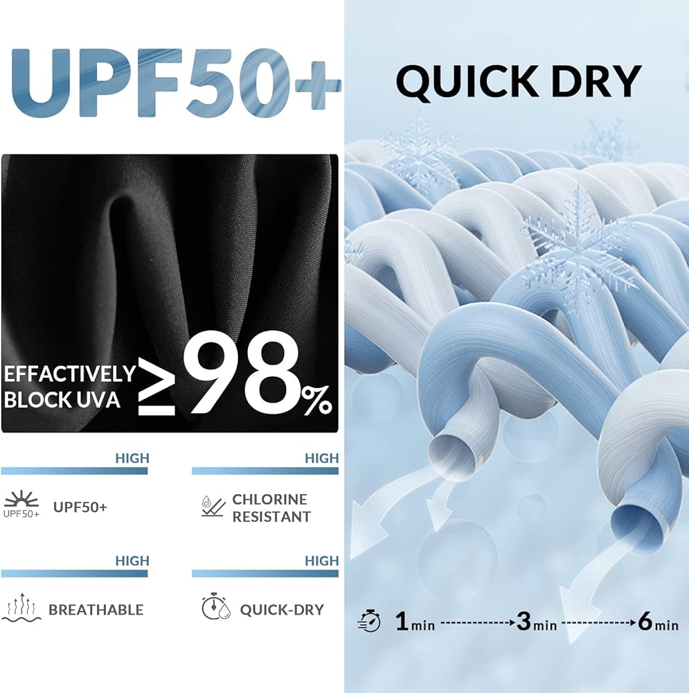 2 Side Pockets: Functional pockets with drain hole not only store your belongings but also accelerate water flow for quick drying, and keep you hands free in swimming