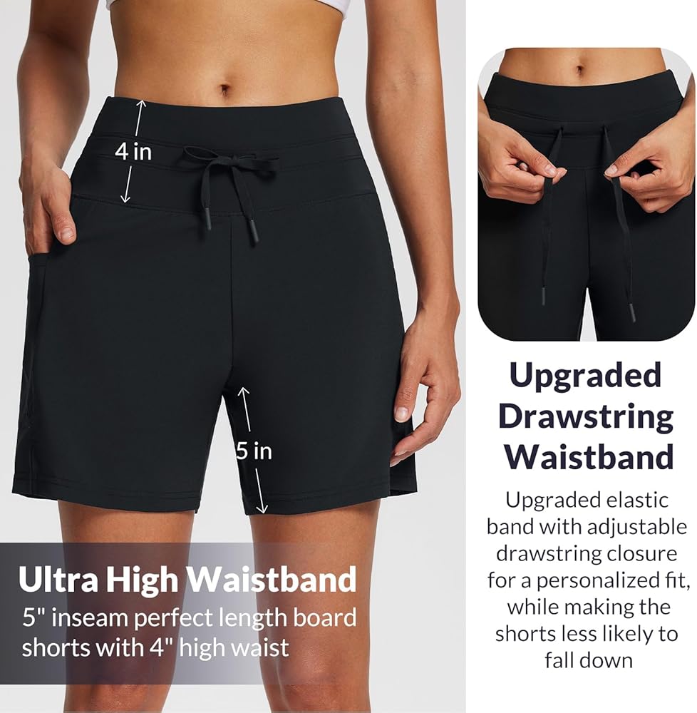 4 inch High Waist: Tummy control swim shorts with high elastic offer full coverage and cover extra belly fat, ideal for the modest swimmer