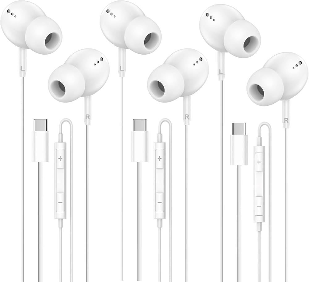 USB C Headphones Pack of 3 for iPhone 17/17Pro Max/16/16 Pro/16 Plus/16 Pro Max/15 Plus/15 Pro/15 Pro Max, Type-C Wired Earbuds with Microphone & Volume Control
