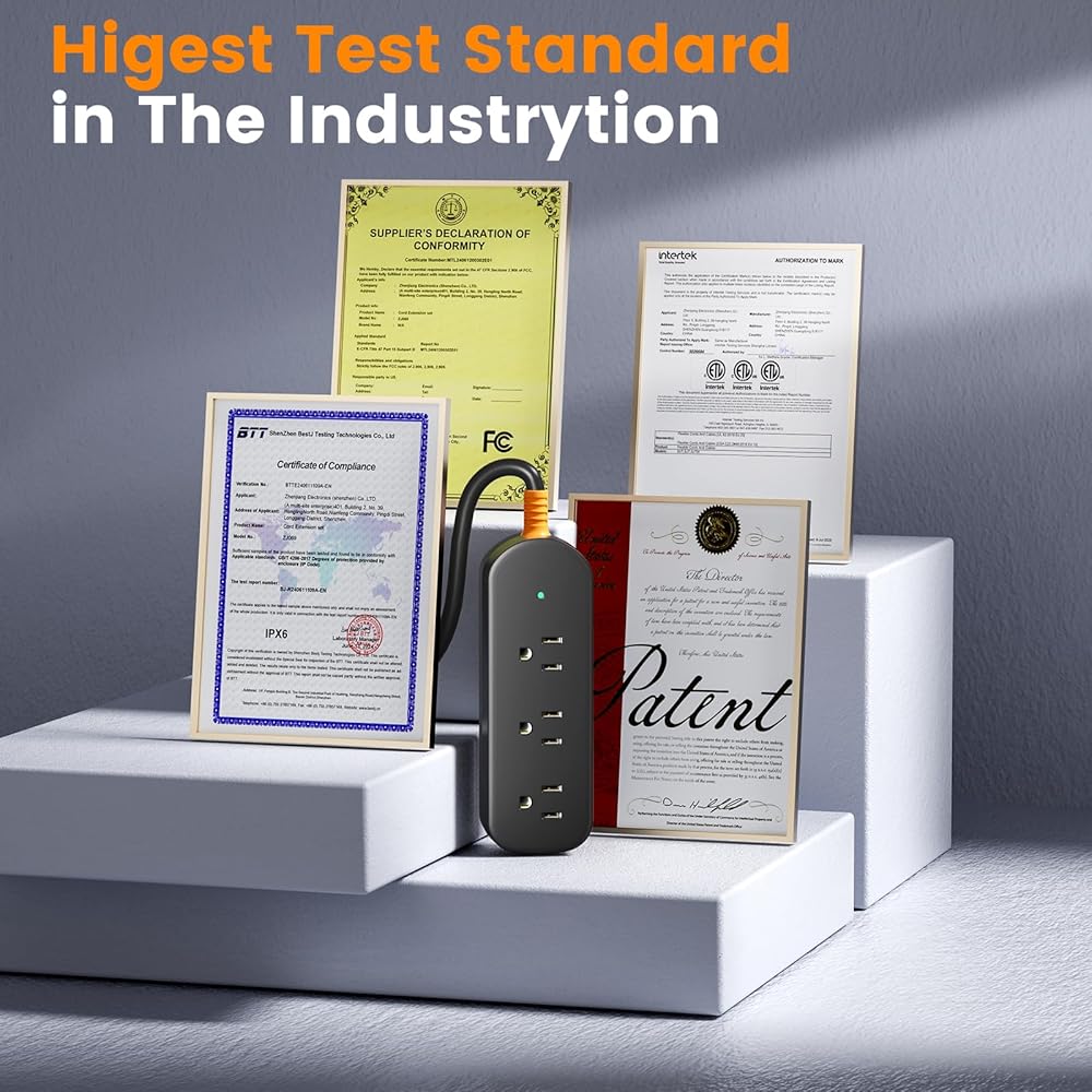 Whether you're looking for a heavy-duty power strip for your home office, an outdoor power strip weatherproof for your garden parties, or a travel power strip for your next trip, our outdoor power strip weatherproof design is perfect for you, it comes with an electric shockproof, overload protection, IPX6 waterproof, heat-retardant and so on, it ensures the safety of your device and family