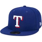 The Texas Rangers Authentic Collection 59FIFTY Fitted cap features a blue team color fabrication with an embroidered Texas logo at the front panels and an embroidered MLB Batterman at the rear.