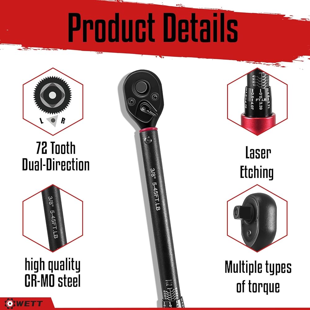 Click Notification: When adjusted to a preset torque value, the wrench handle will "click" to alert you that the torque has been reached, thus preventing excessive damage