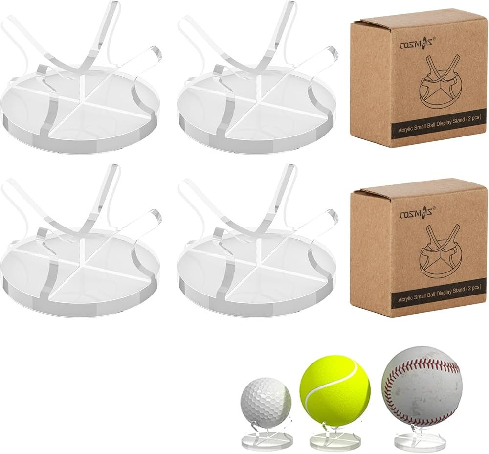 DIMENSION & MATERIAL: 2 Inch diameter x 1.15 Inch Height. Simple and elegant look. Perfect for sports balls as a decoration. Made of sturdy and durable acrylic material. Waterproof and long lasting for use. Comes with anti-slip rubber pad on bottom for secure display and avoid scratching.