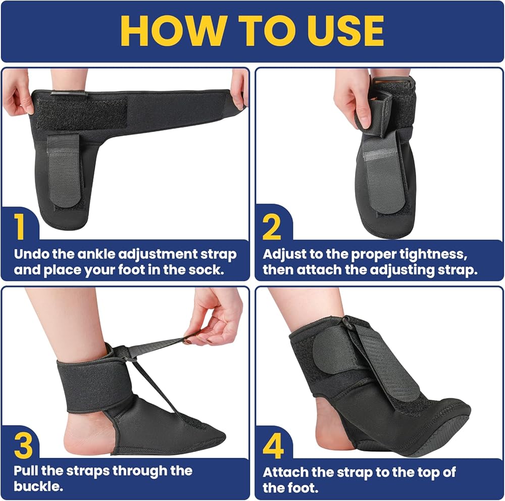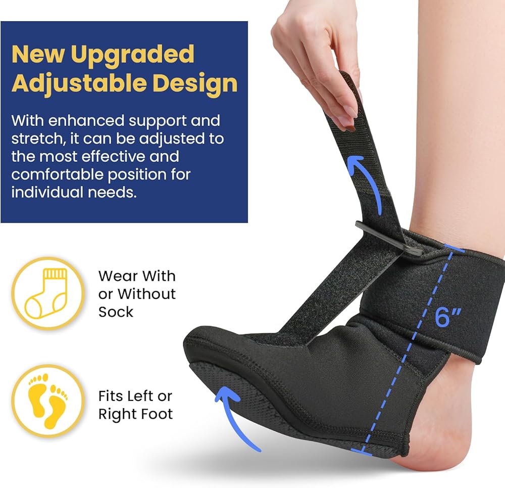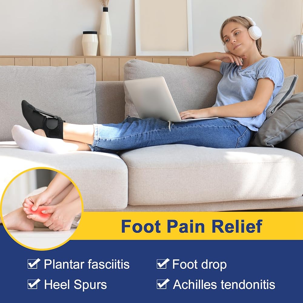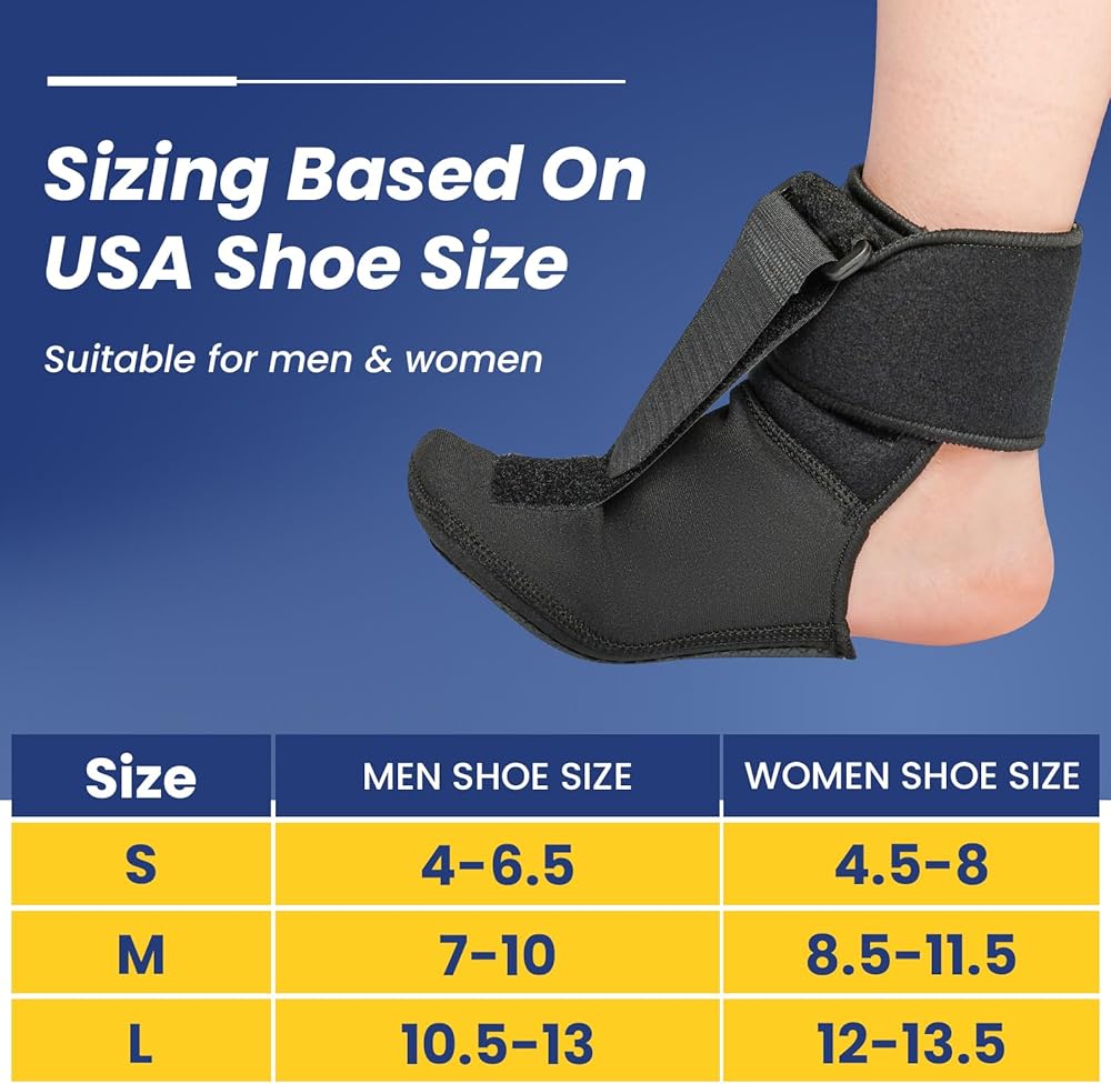 【TO CHOOSE YOUR SIZE】View our sizing chart (the 5th image above). The plantar fasciitis relief night splints can be worn on your right or left foot. With open ankle design and heel design, our plantar fasciitis braces are easily customize the comfort you want!