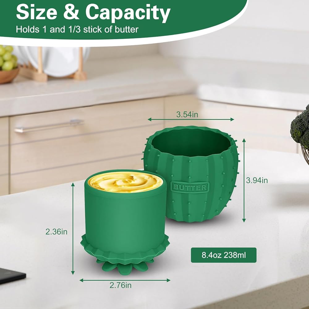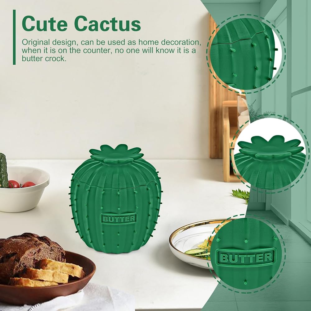 🧈【Cute & Creative Cactus】: This is our original patented design and the first similar style butter crock on the market, it is so cute that you put it on the kitchen counter and no one will even know that it is a butter keeper, it is a perfect gift choice.