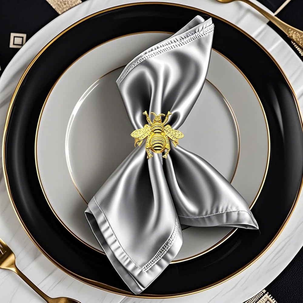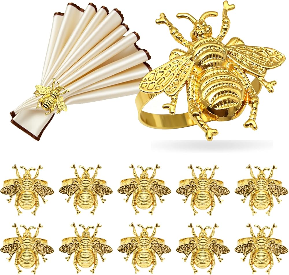 Bee Napkin Rings Set of 12 Gold Bumblebee Napkin Holder Ring for Spring Party Wedding Baby Shower Brithday Table Setting,Metal Bug Insect Napkin Ring for Rustic Farmhouse Dining Table Decor