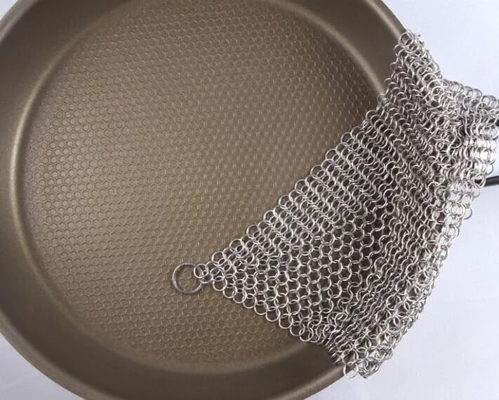 Made from high-quality 304 stainless steel scrubber is built to last. Its rust-resistant construction ensures long-lasting performance, making it a reliable companion for all your cleaning needs. The chainmail design effectively removes grime while preserving the seasoning on your cast iron cookware.
