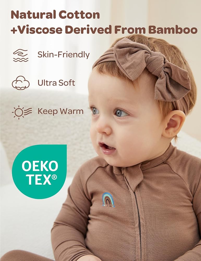 SILKY SOFTNESS MAKES GENTLE LOVE FOR BABY: Momcozy ultra soft baby and newborn sleepers are made from natural cotton and the viscose derived from bamboo, friendly for baby delicate skin, provides a comfortable surface and a safe sleeping environment for babies keeping them calm when they are in sleep.