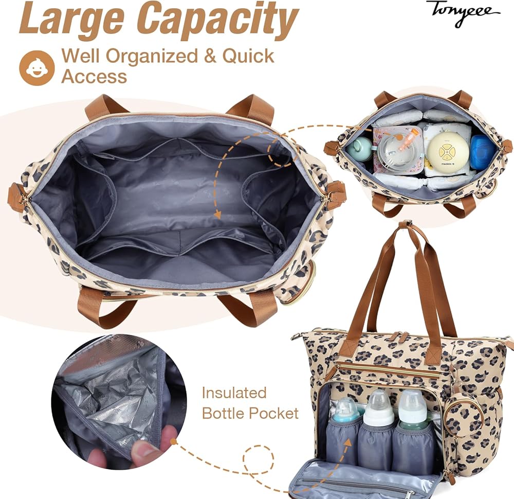 Super Spacious:The Large diaper bag have plenty of room to hold everything you and baby need. With 16 pockets keep baby stuff,including a convenient pocket for easy access to wet wipes and three stable thermal bottle compartments,this bag ensures organized storage for your baby's essentials
