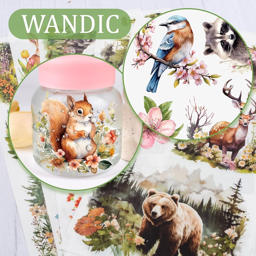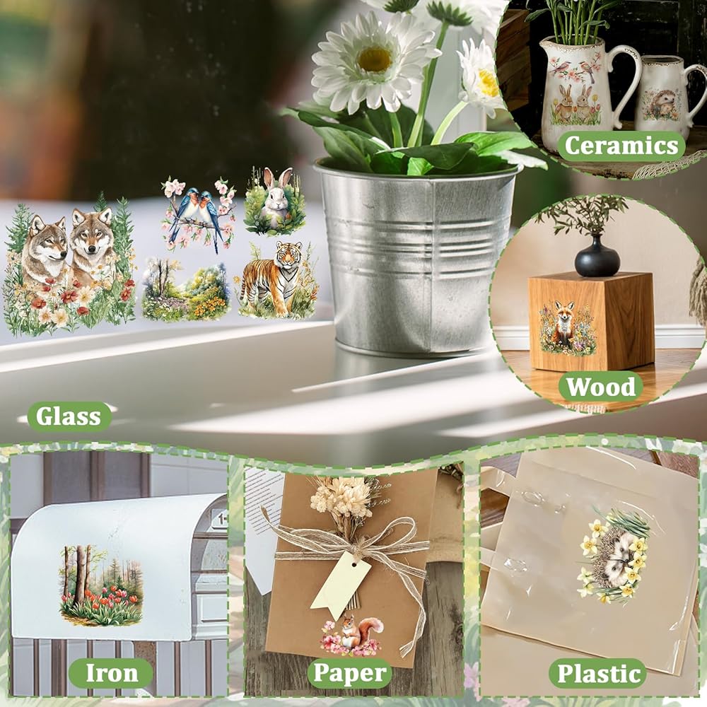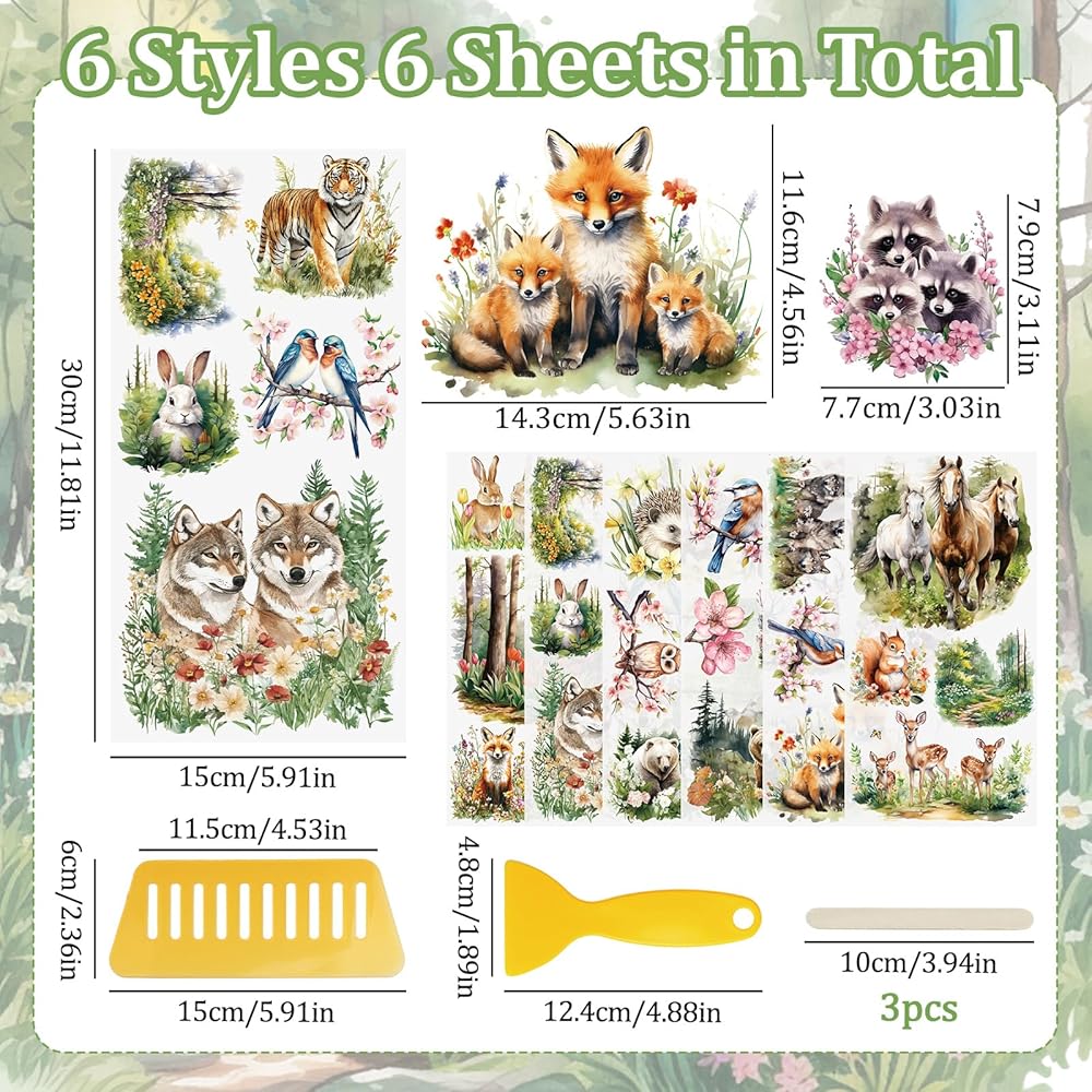 WANDIC 6PCS Spring Animals Rub On Transfer Stickers, Forest And Lake Scenery Decals Fox Rabbit Animals for Furniture Scrapbooking Window, 15*30cm