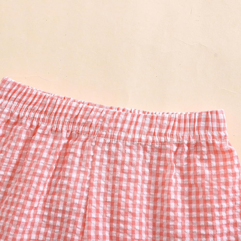 SOFT MATERIAL: Toddler boy girl gingham plaid shorts, baby elastic waist shorts are made of 65% cotton 35% polyester; The casual shorts for toddler are breathable and skin-friendly. Cut from soft fabric for a comfortable fit, durable and elastic, brathable and lightweight, going out shorts for baby, gingham boxer shorts