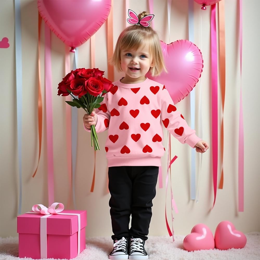 Age: Adorable Valentine's Day heart outfit suit for 12-18 months baby girls, 18-24 months love heart sweater shirt, 2t-3t toddler girl red Valentine sweatshirt, 3t-4t little girl pink Valentine's Day sweatshirt, long sleeve vday shirts for 4t-5t kids girls. Stylish toddler girl valentines day clothes, great for spring fall winter casual wearing.