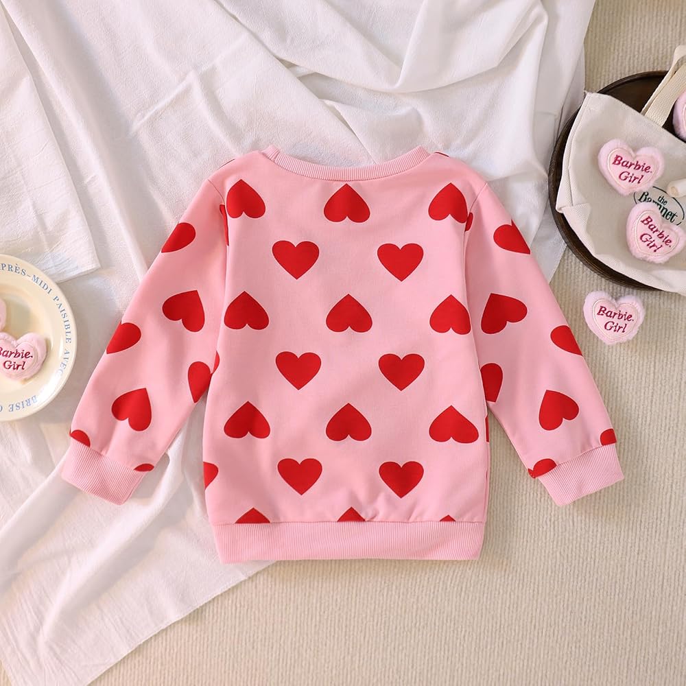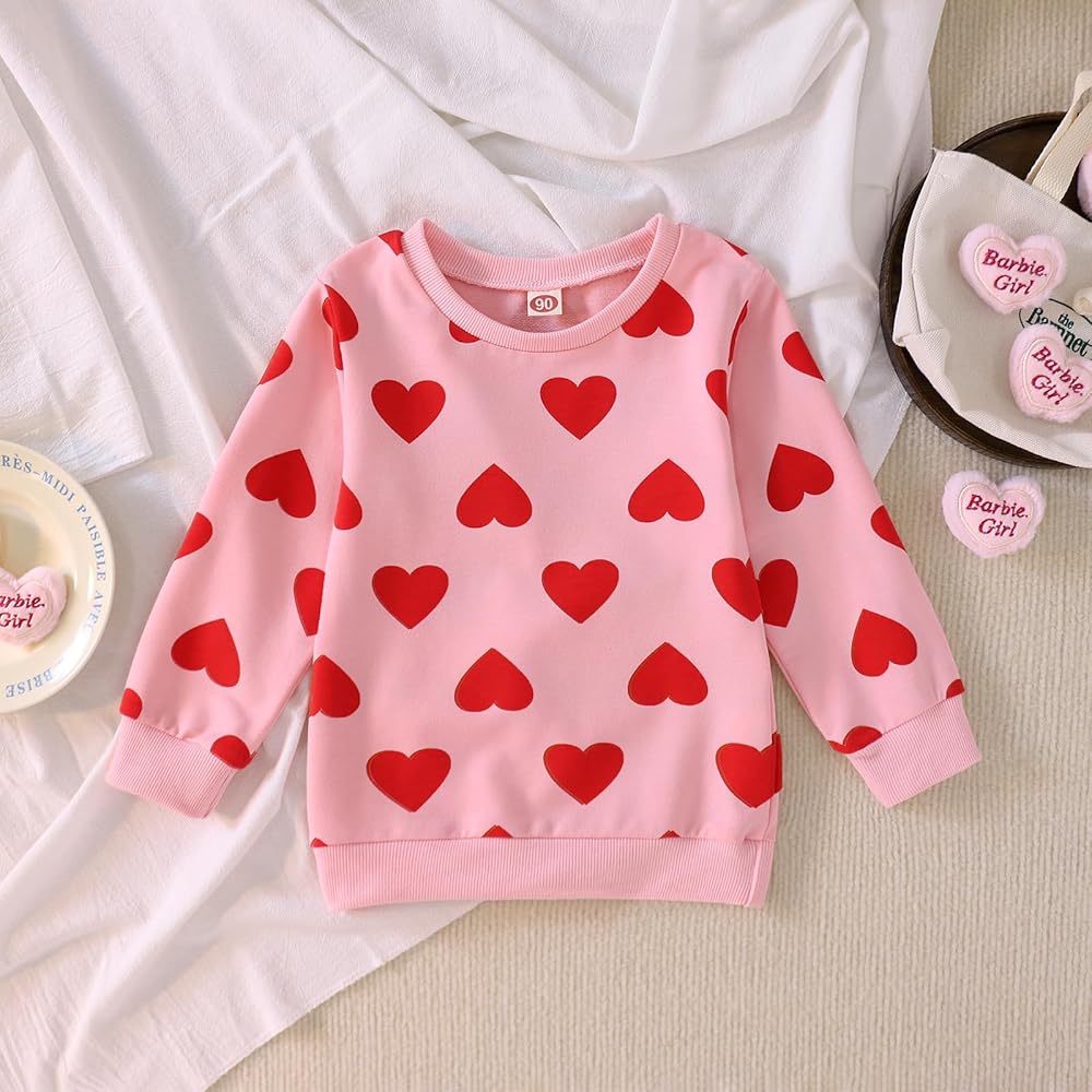 Design: Toddler baby girl Valentine sweatshirt, love heart crewneck sweatshirt pullover sweater shirt tops, vday long sleeve shirt for toddler girls, toddler valentine outfit girl. Sweet heart cute and stylish design, great in spring and Valentine's Day.