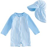 Baby Boy Girl Swimsuit Toddler Checkered Print Half Zip One Piece Bathing Suit Swimsuit Rash Guard Surfing Suit with Hat
