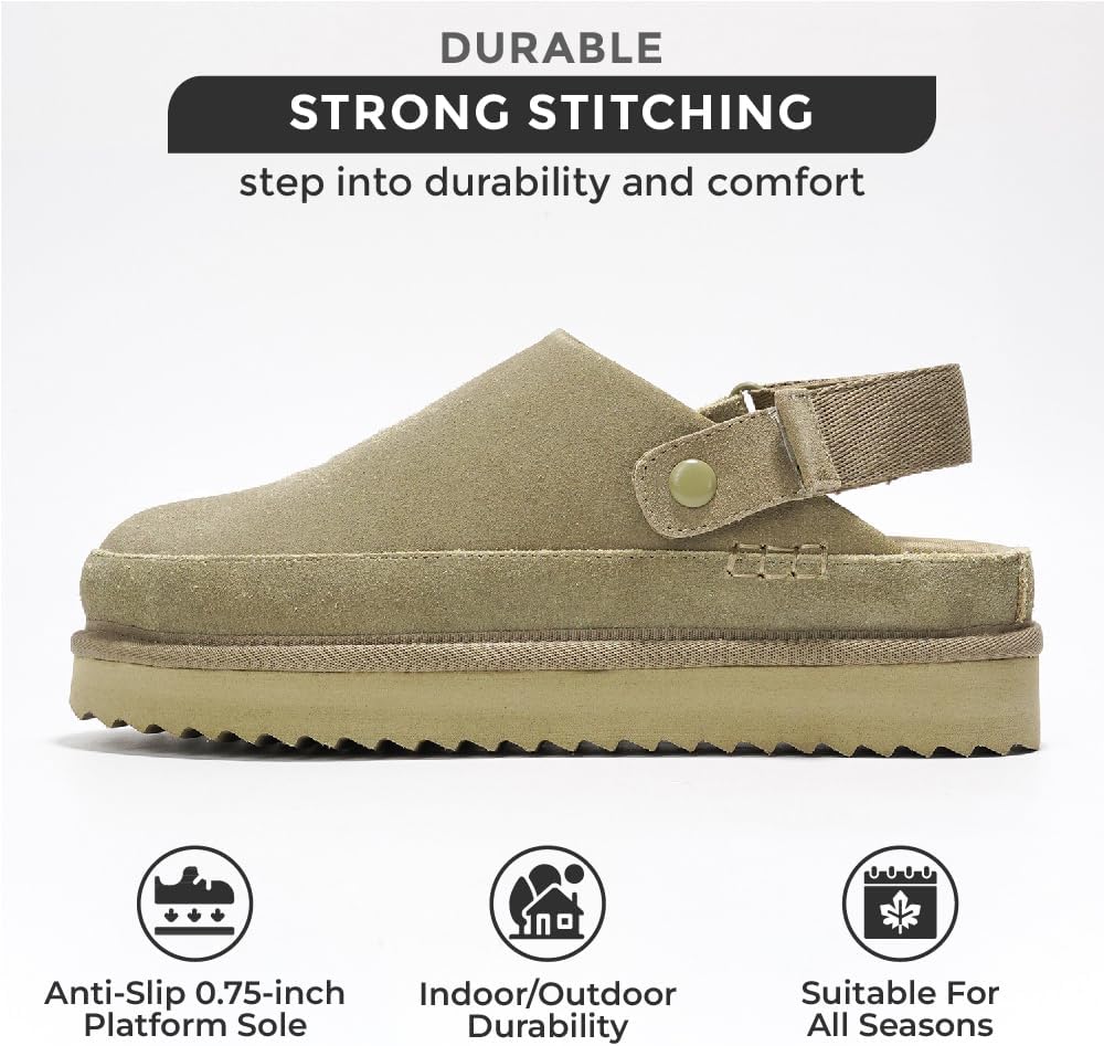 𝗚𝗲𝗻𝘂𝗶𝗻𝗲 𝗦𝘂𝗲𝗱𝗲 𝗖𝗹𝗼𝗴𝘀: Expertly crafted from genuine suede, these women's clogs offer a stylish and durable option for all weather conditions, making them ideal as winter shoes for women 2025.