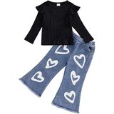 PACKAGE INCLUDED: 1x tops + 1x jeans. Cotton blend for baby girl outfit,cute for girl to dress in Spring fall, no harm to toddler girls skin health. Great gift for your little one.Wash gentle cycle cold with like colors/do not bleach and dry low/iron low when needed