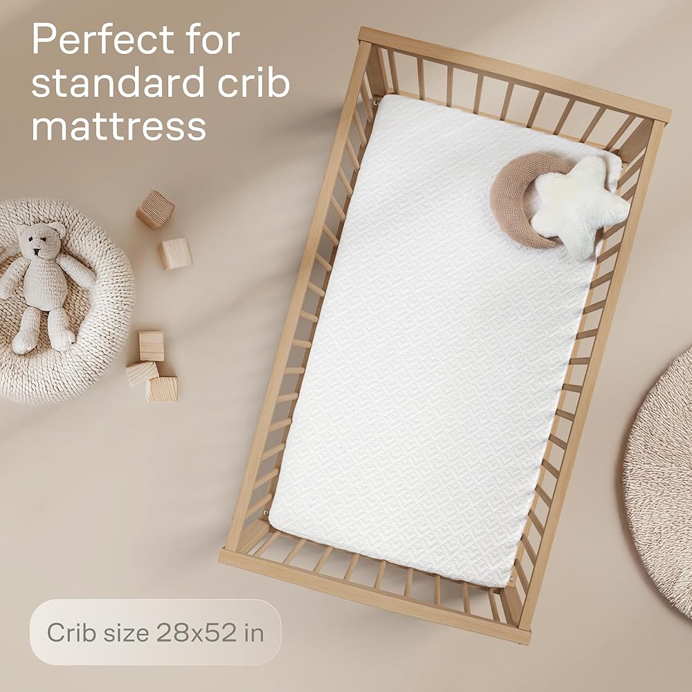 Soft & breathable: The breathable fabric keeps the mattress cool and comfortable, making it the perfect addition to your nursery. Plus, our protector is OEKO-TEX STANDARD 100 certified, ensuring it's free from harmful substances and safe for your little one.
