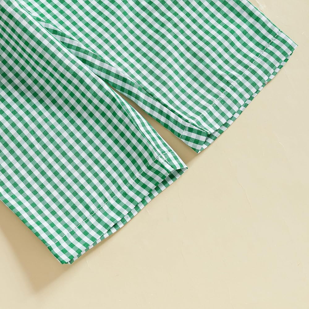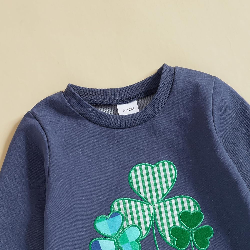 Toddler Boys Spring Outfits Shamrock Plaid Embroidery Long Sleeve Crew Neck Baby Sweatshirts with Pants 2 Pcs Set