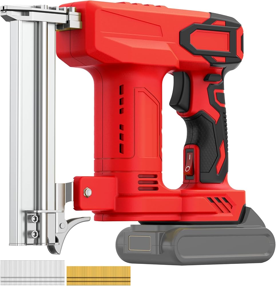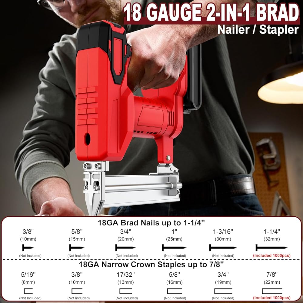 Cordless Brad Nailer & Staple Gun for DE WALT 20V Battery (No Battery), 18 Gauge 2 in 1 Staple Gun Nail Gun with 2000 Nails for Wood, Drive up to 1-1/4 in Nails & Crown 7/8 in Staples, Red