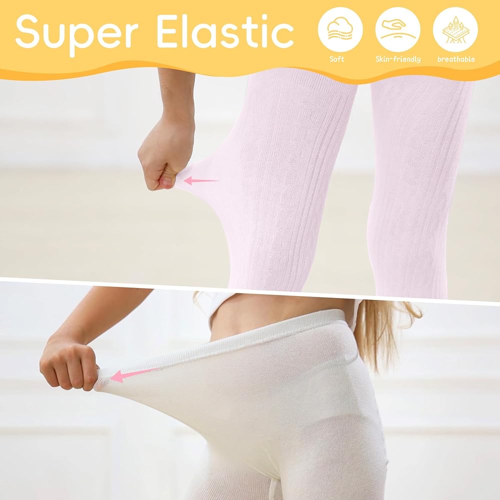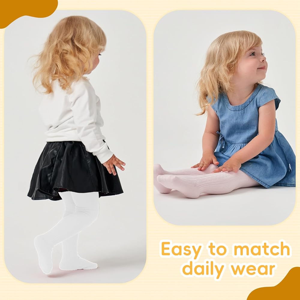 [Comfortable & Soft]: Our 2 pack baby tights made by high quality fabrics which made of soft and skin-friendly high-quality materials: 79% cotton, 18.7% nylon and 2.3% spandex to keep the tights soft and breathable, provide warmth for your babies and protect them tender skin from damage. It's definitely the great gift for your baby in cold winter and cool weather.