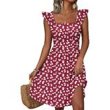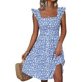 Stylish Design: The cute summer sundress features a square neck, ruffle cap sleeve, A-line, floral print, and knee-length.