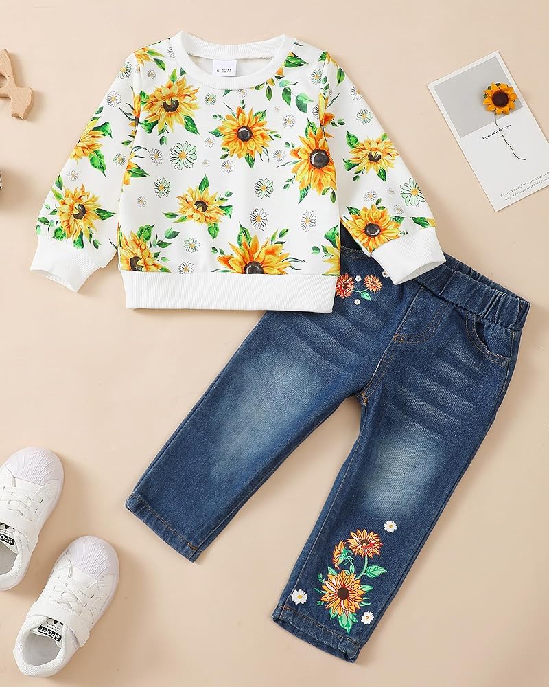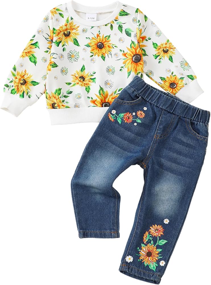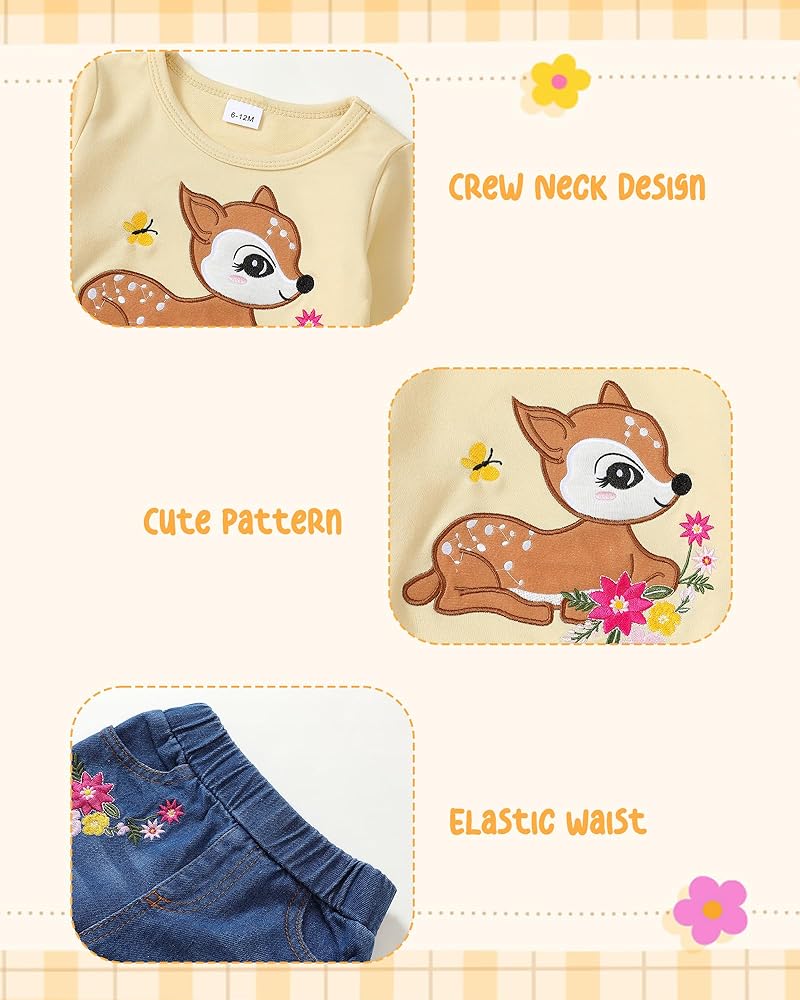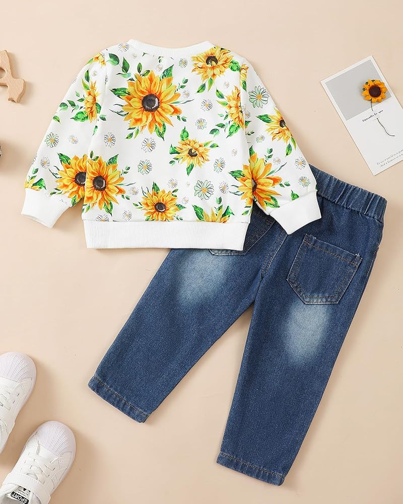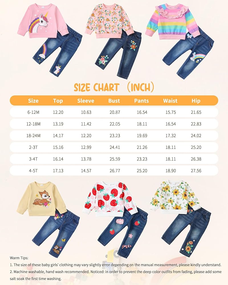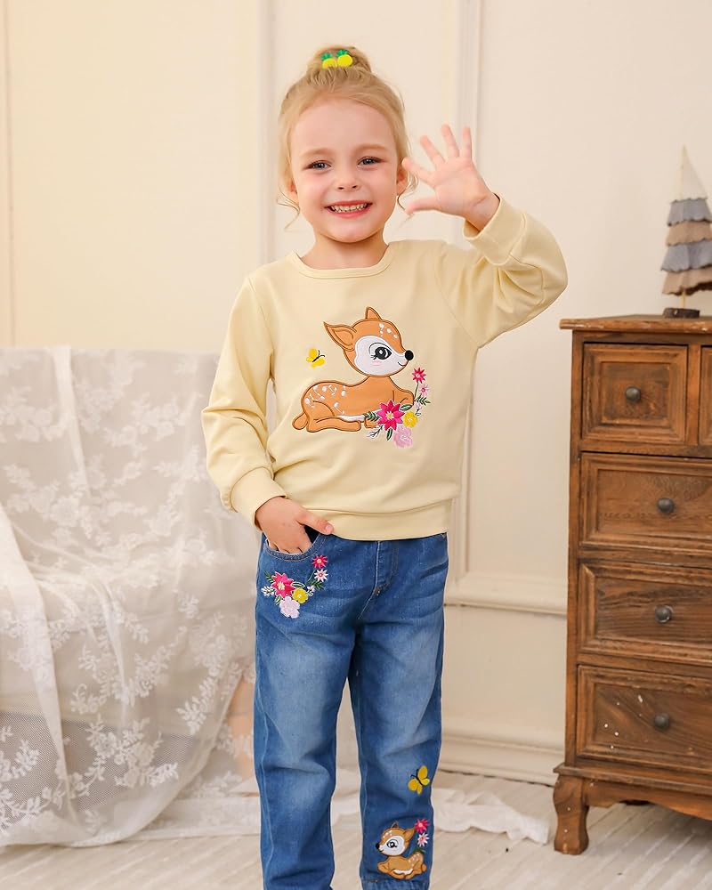 Comfortable Quality Materials: Our little girl clothes are made of high quality fabrics. Cute and comfortable hoodie: This adorable hoodie is made from soft cotton, perfect for keeping your little one warm and cozy. Straight leg jeans: High quality denim fabric, this material is not only comfortable, but also gentle on sensitive skin, suitable for wearing all day