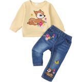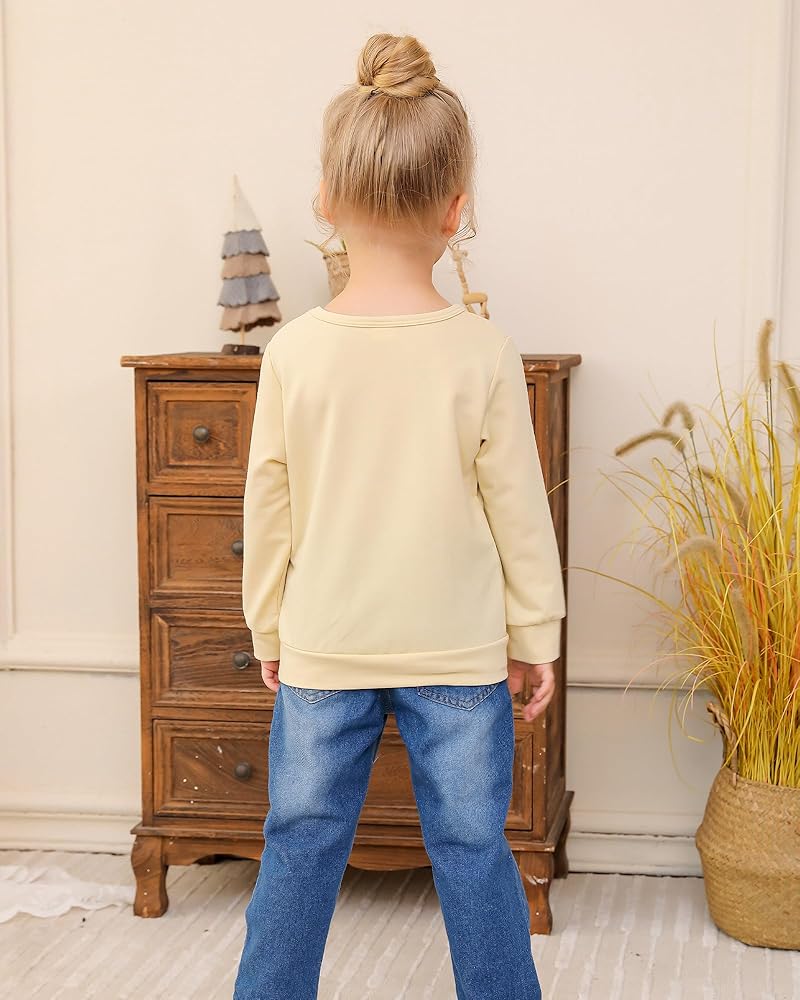 Outfit Includes: 1pc cute long sleeve crewneck hoodie, 1pc denim straight-leg jeans. This set is not only fashionable, but also practical, which is loved by parents and children. Dressing comfortably and fashionably is your daughter's must-have fashion outfit for fall and winter