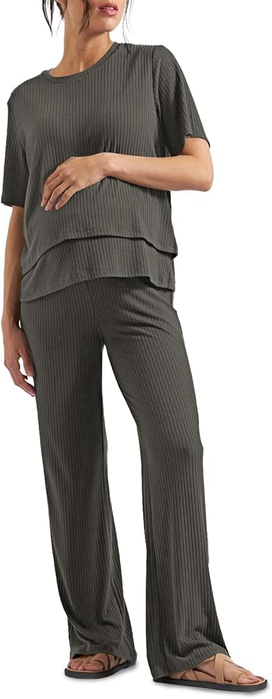 Breastfeeding Friendly: The rib nursing top features short sleeve and crewneck, cozy to wear, and the design of easy access for breastfeeding makes it convenient for nighttime feedings