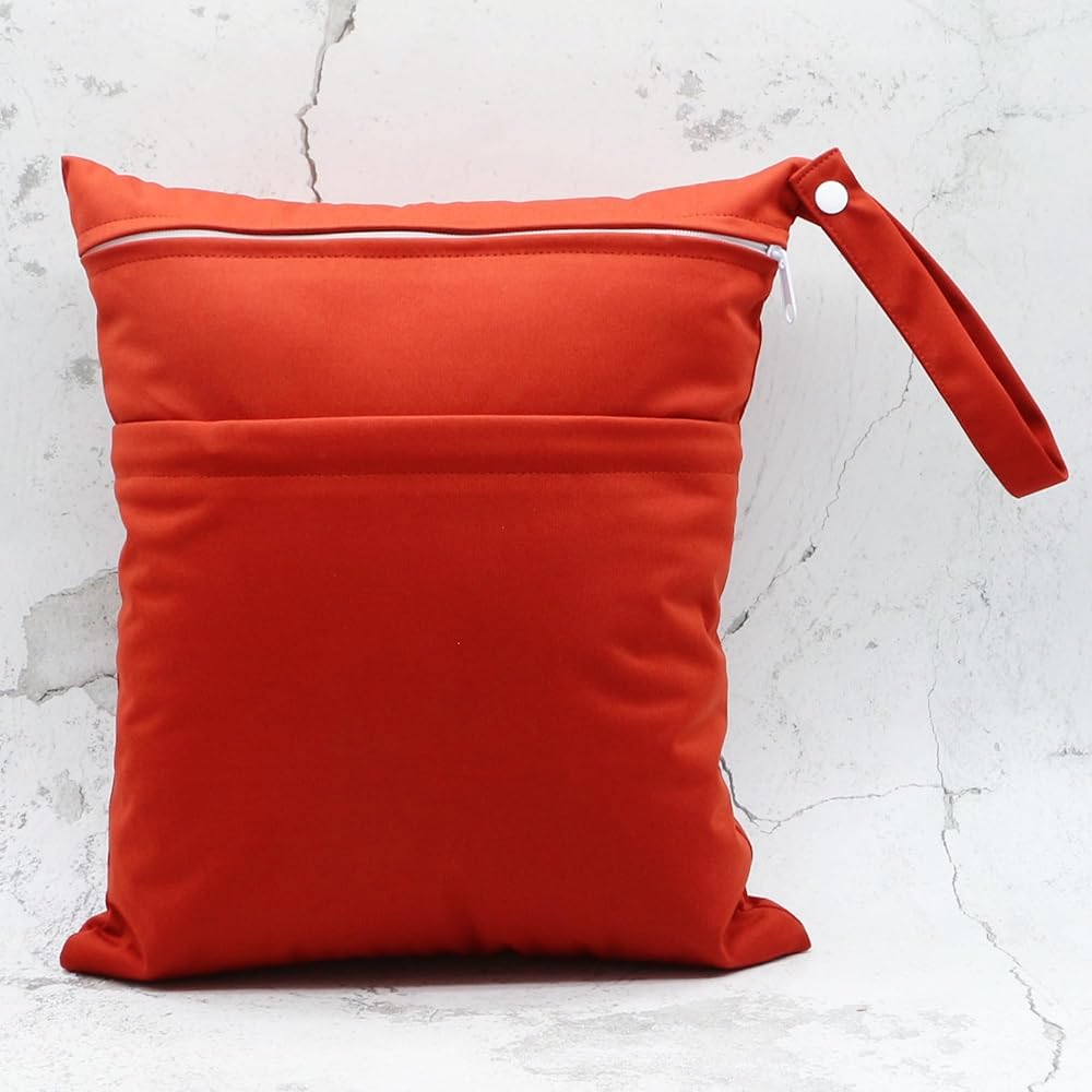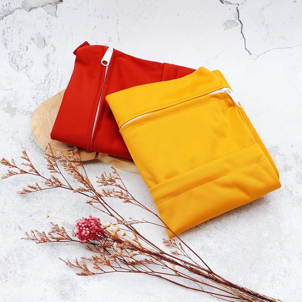 2pcs Cloth Diaper Wet Dry Bags Waterproof Reusable with Two Zippered Pockets Travel Beach Pool Daycare Soiled Baby Items Yoga Gym Bag for Swimsuits or Wet Clothes (3036-2-ginger)