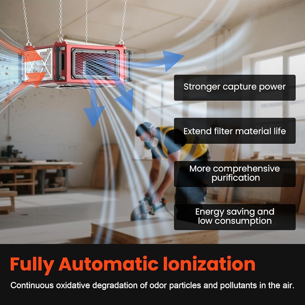 Efficient MERV-11 Filters: Equipped with 3 high-efficiency MERV-11 filters, it effectively captures fine particles, wood dust, and other types of dust, creating a fresh environment and helping to maintain a clean workspace