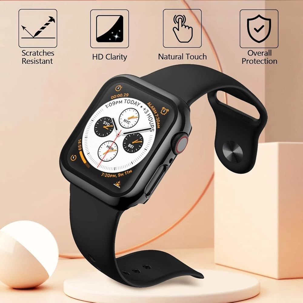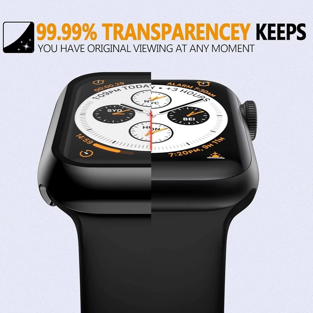Full coverage protector case protects apple watch face and sides. The tempered glass shield is made from the HD clear protective film material, touch screen works almost flawlessly. It's just as precise and responsive as the watch without the case. Doing anything on the watch when you touch it with your finger works great.