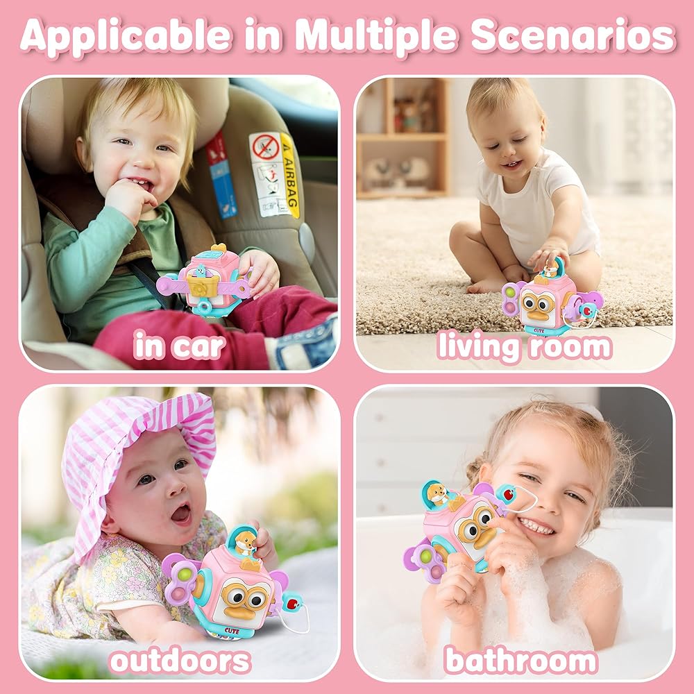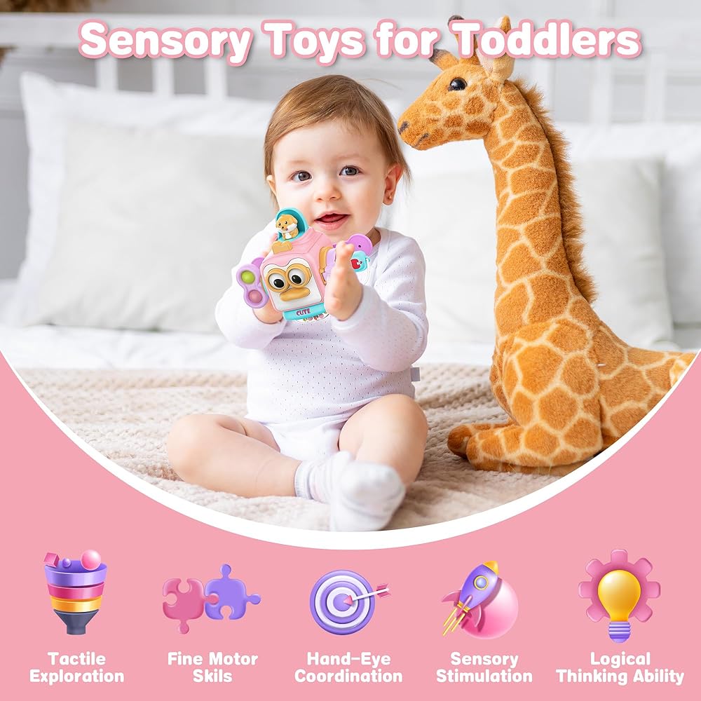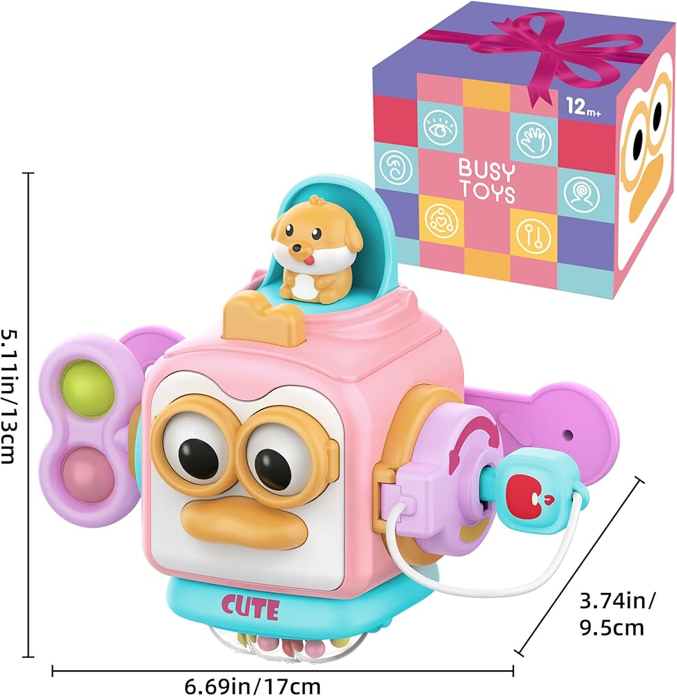 SOONYANG Montessori Toys for 1 Year Old Girl, Toddler Toys Travel Activities Busy Board Cube for 1 Year Old Girl Gifts, Sensory Toys for Baby Gifts, Learning Fine Motor Skills Toddler Girl Toys
