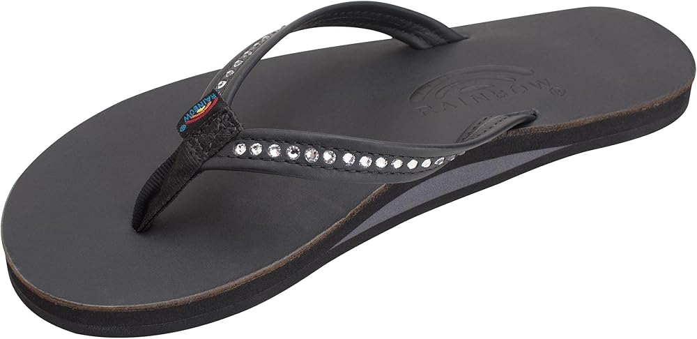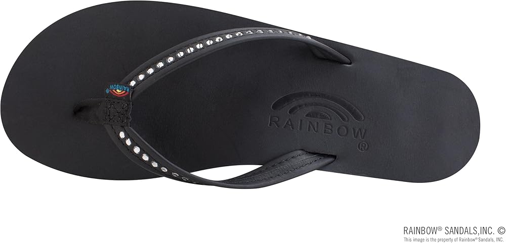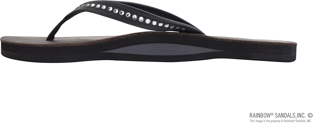 Rainbow Sandals Women's Single Layer Premier Leather w/Swarovski Crystal Narrow Strap